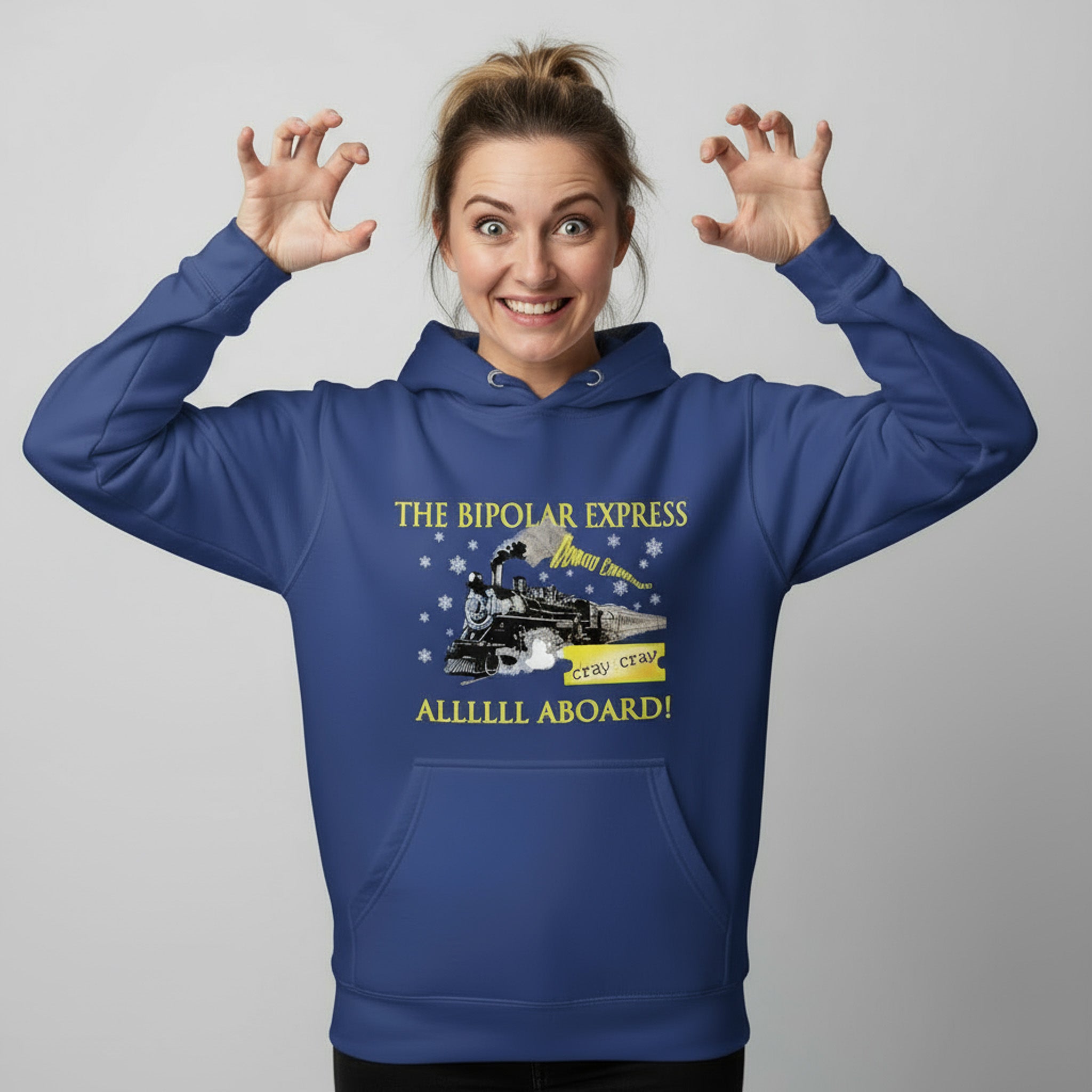 Bipolar express, the crazy train. If you need a ride to the funny farm, we've got you covered. This is a funny holiday hoodie for those in the medical field who is in touch with their inner cray cray. The perfect shirt and Christmas gift for nurses, aides, RT's, MD's, NP's, and other medical professionals.